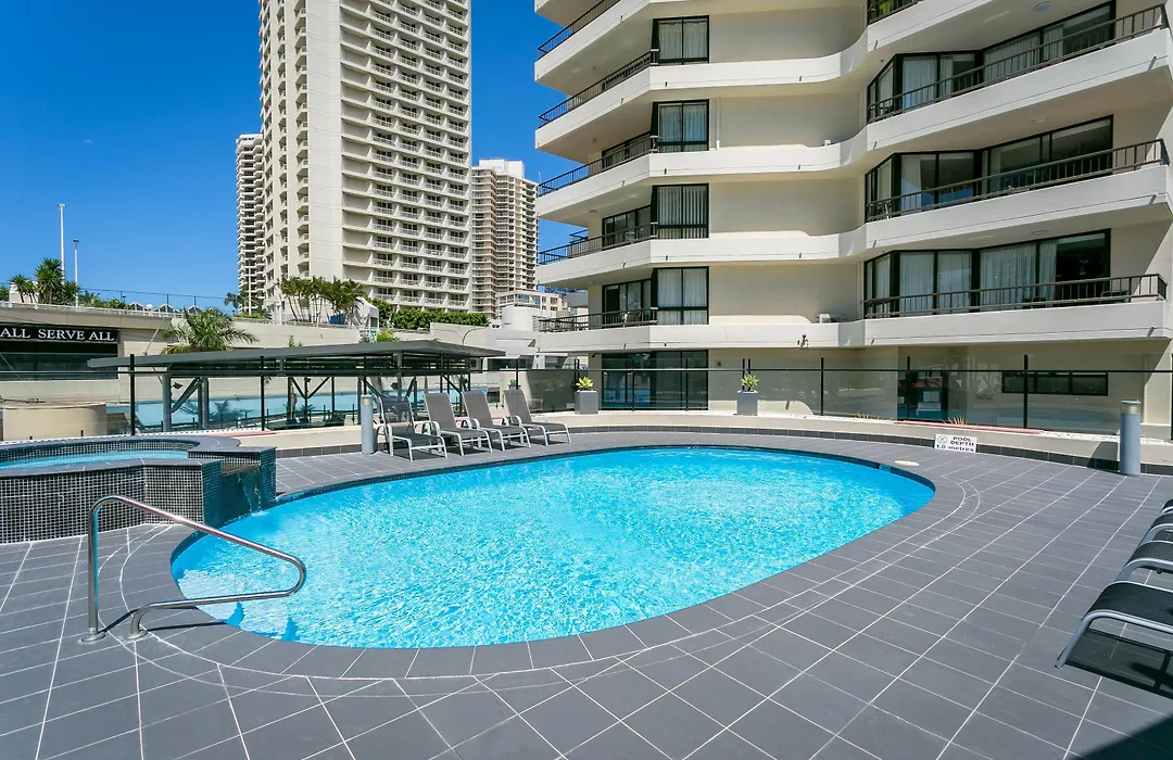 Immerse yourself in Gold Coast's charm with the perfect 3-star Breakfree Cosmopolitan Aparthotel Gold Coast, located merely 5 minutes' stroll from the indoor family Timezone Surfers Paradise Amusement Center and offering tour/ticket assistance to help you get the most out of your trip. Boasting a swimming pool, the smoke-free hotel is nestled 3.1 km from natural attractions like Kurrawa Pratten Park.